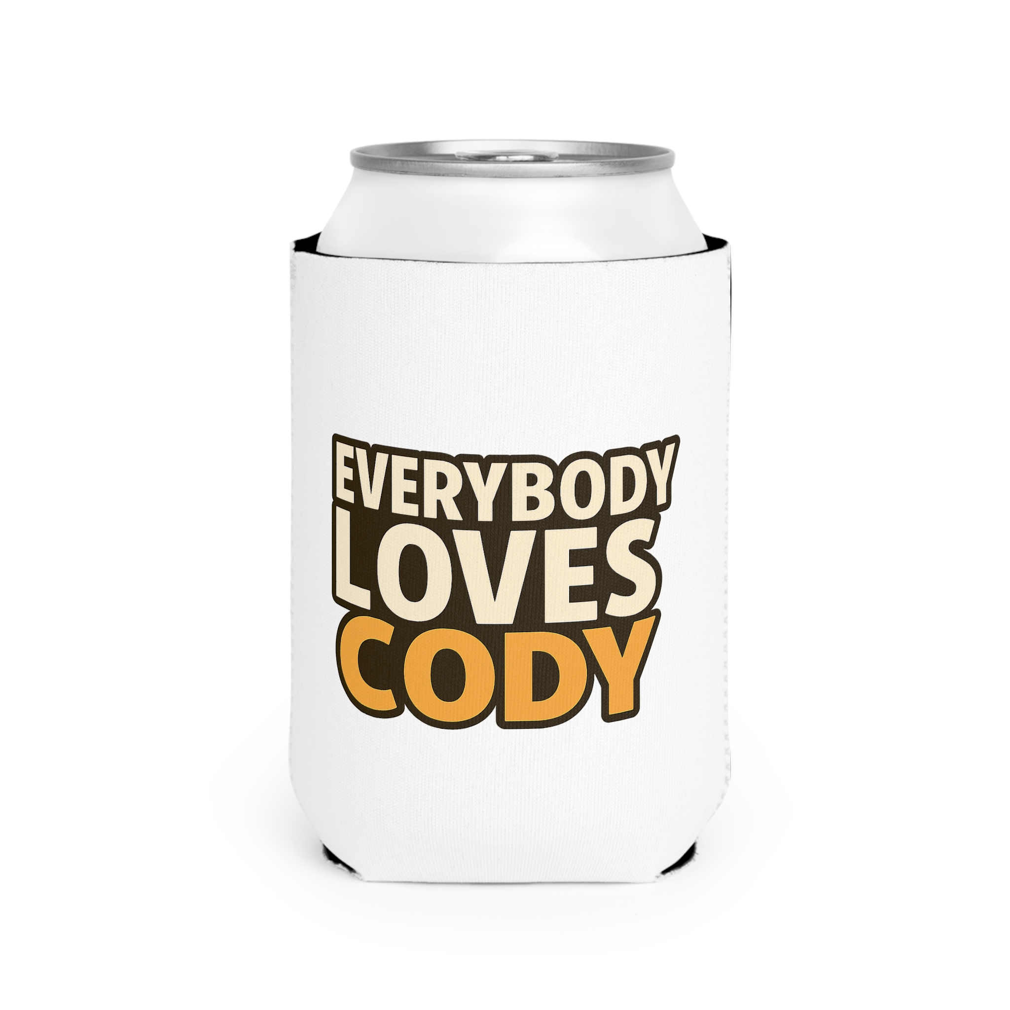 Bright, bold, and a little bit playful — this neoprene can cooler sleeve keeps a cold drink exactly where it belongs and announces who’s the life of the party. The thick, slip-resistant foam hugs a standard 12 oz can, locking in chill and preventing condensation from ruining your grip. The design’s warm retro lettering adds sunny personality to backyard barbecues, tailgates, or laid-back evenings with friends. Lightweight and collapsible, it tucks away easily between uses and brings a pop of color and humor whenever Cody’s name comes up. Note: seams may show light lines due to the printing process.